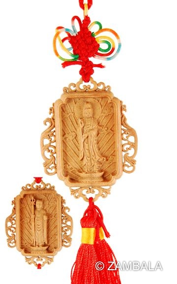 Wooden Carved Deity Charm, Kuan Yin and Ksitigarbha