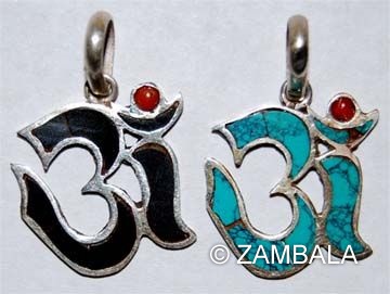 Om letter pendant w/stone (M)